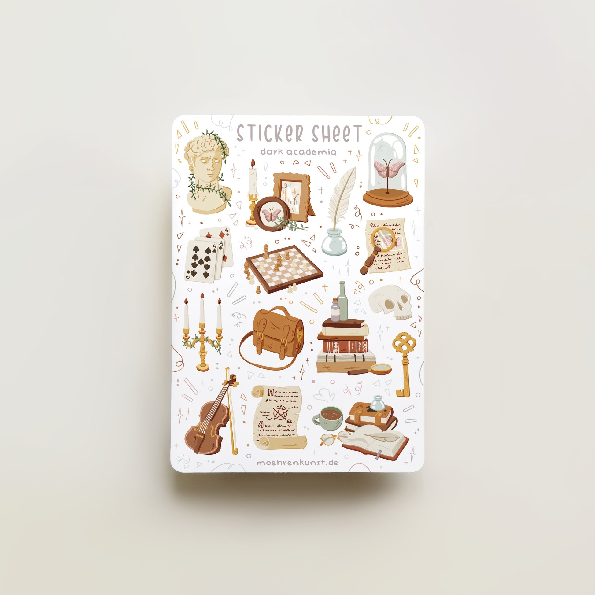 Ihastuttava tarra-arkki dark academia -tyyliä ihannoivalle.